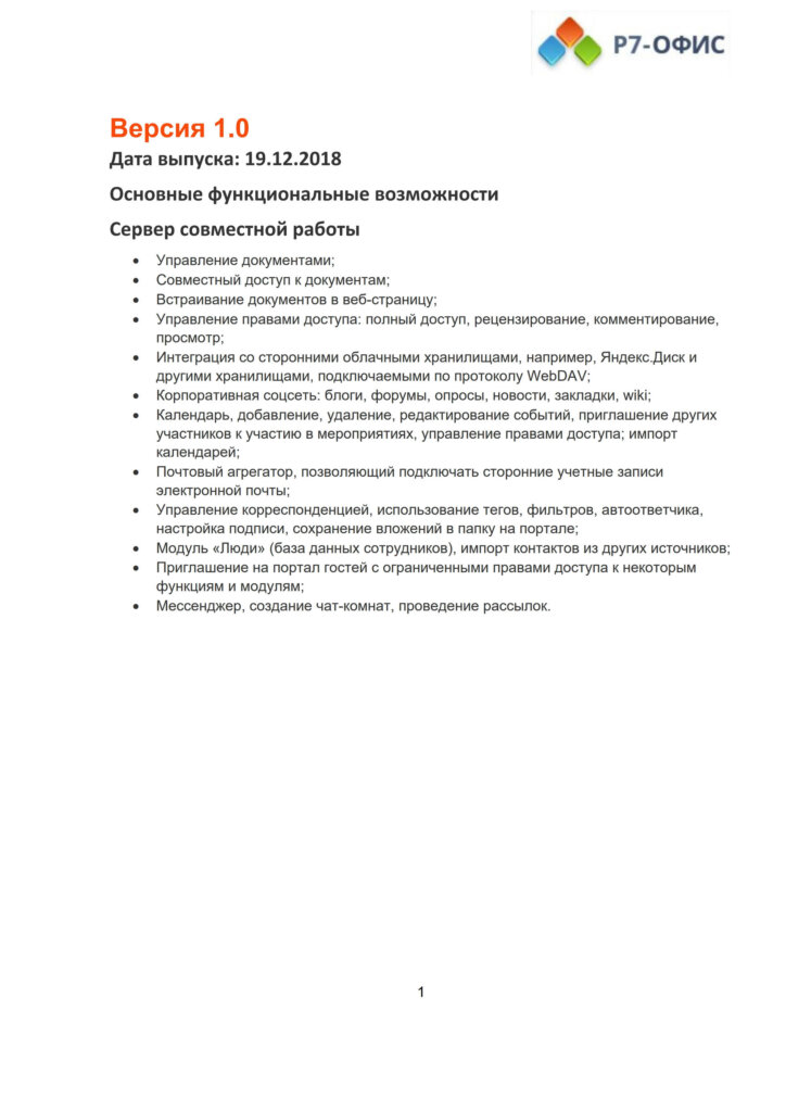 Информация о новых функциях, улучшениях и исправлениях в обновлении продукта