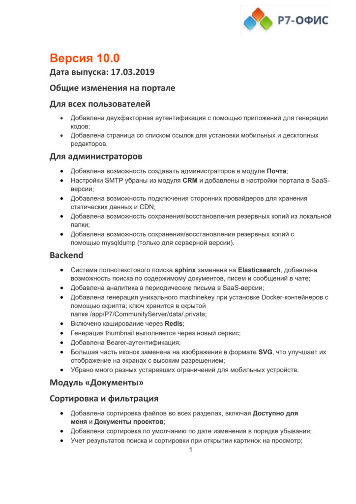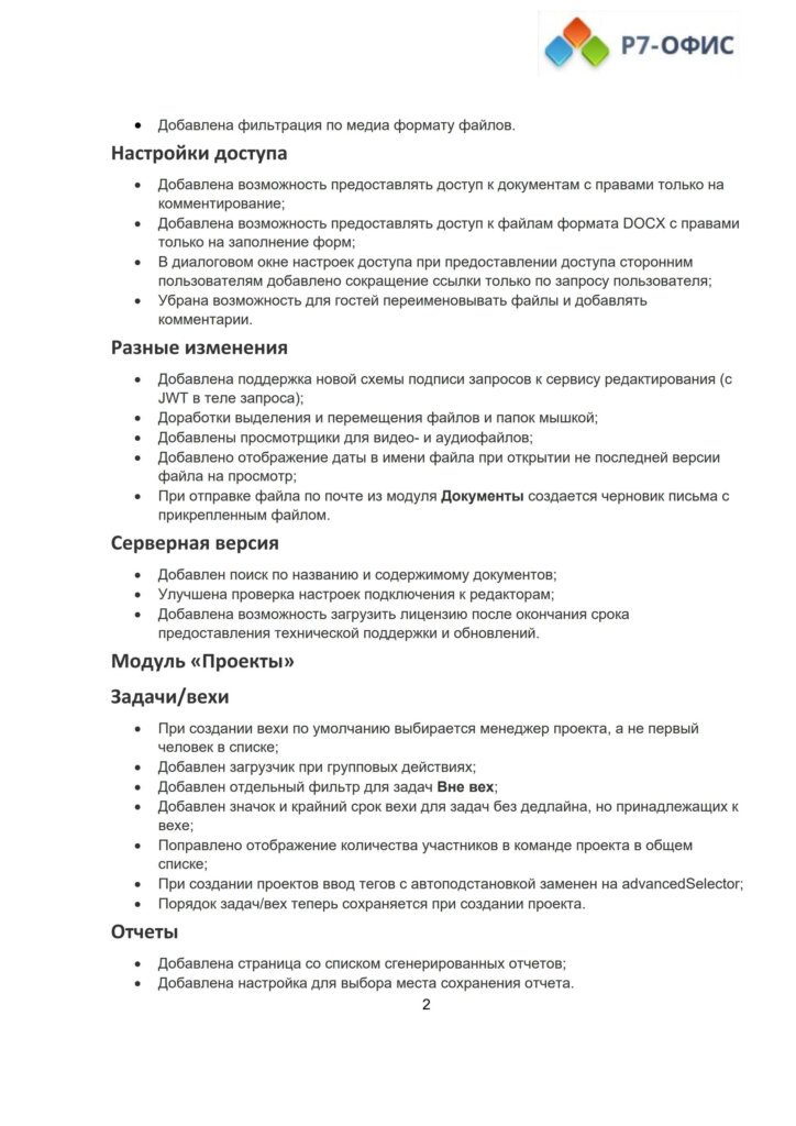Информация о новых функциях, улучшениях и исправлениях в обновлении продукта