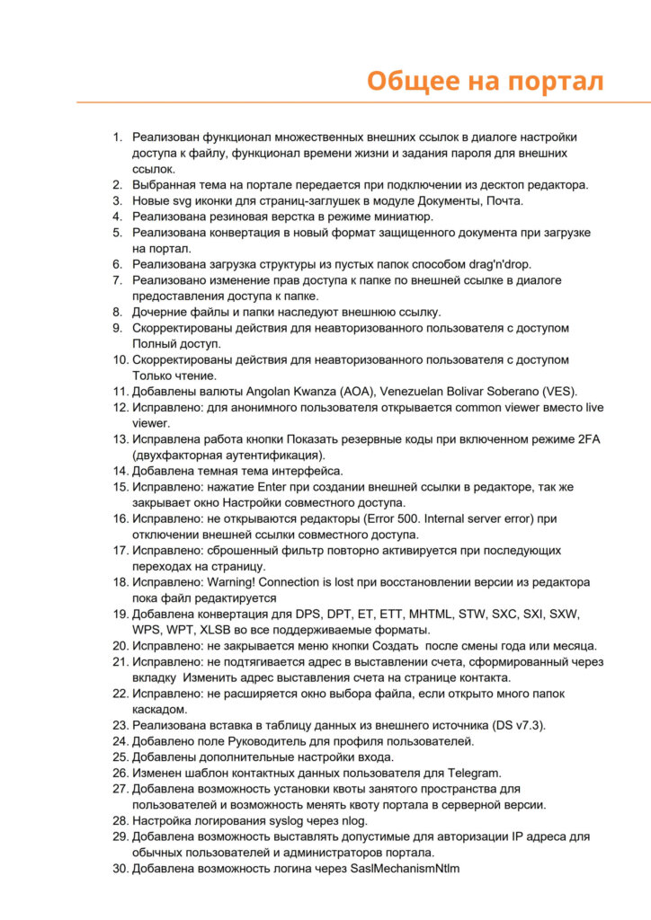 Информация о новых функциях, улучшениях и исправлениях в обновлении продукта
