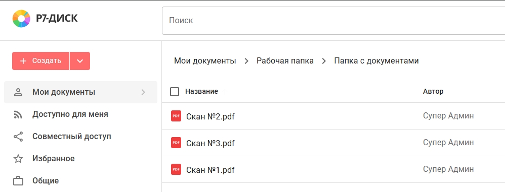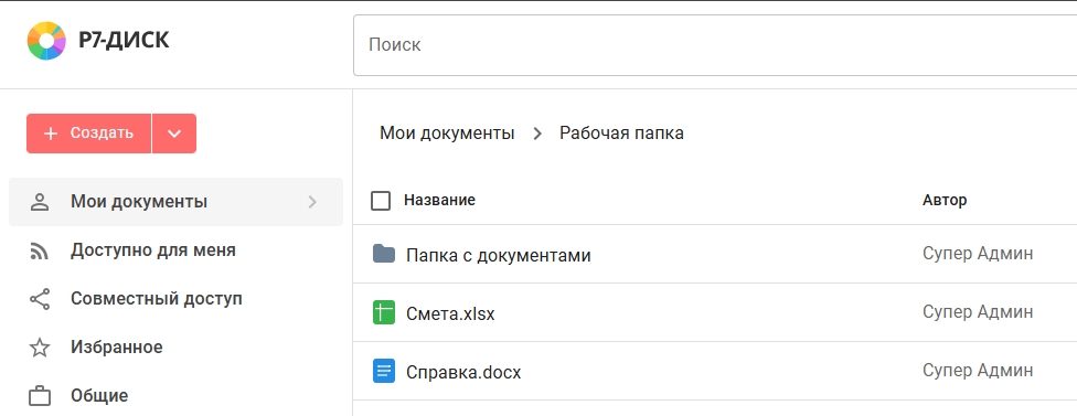 Убедитесь, что вся структура папок и файлов была корректно воссоздана в «Р7 Диске», сохранив исходную иерархию.