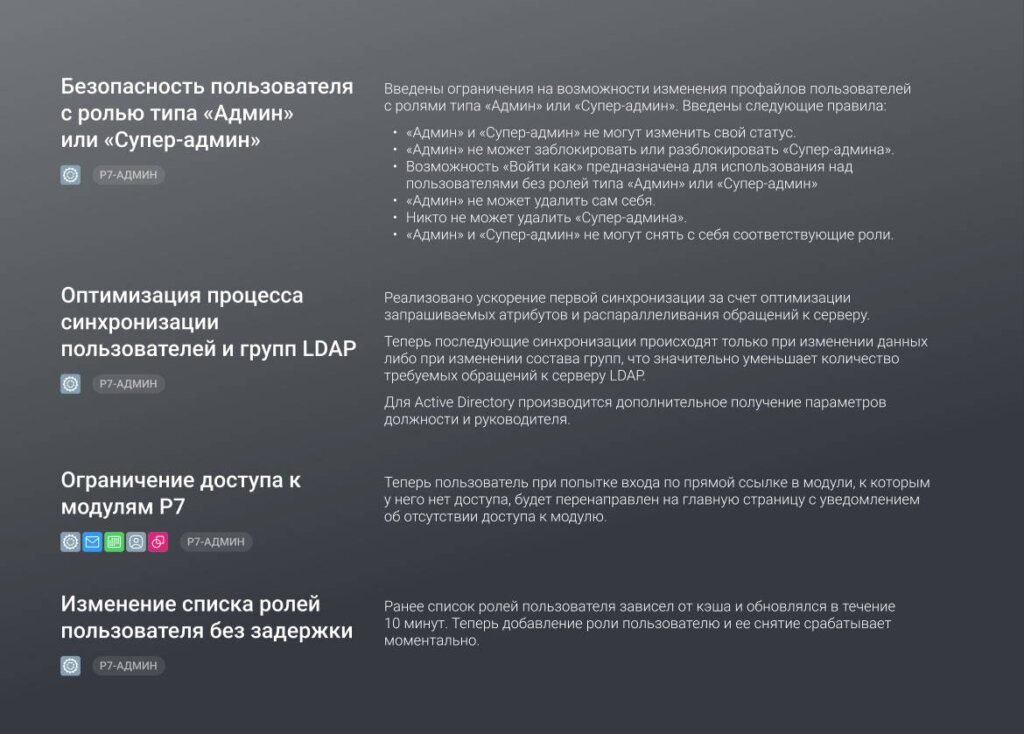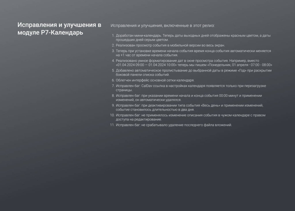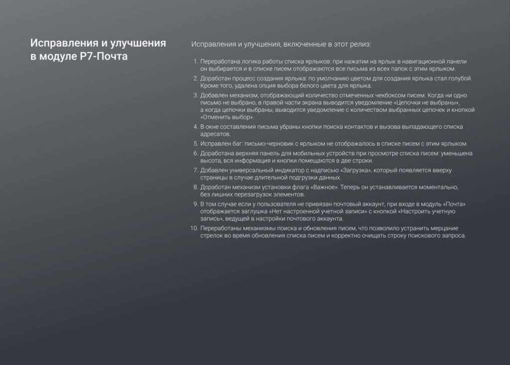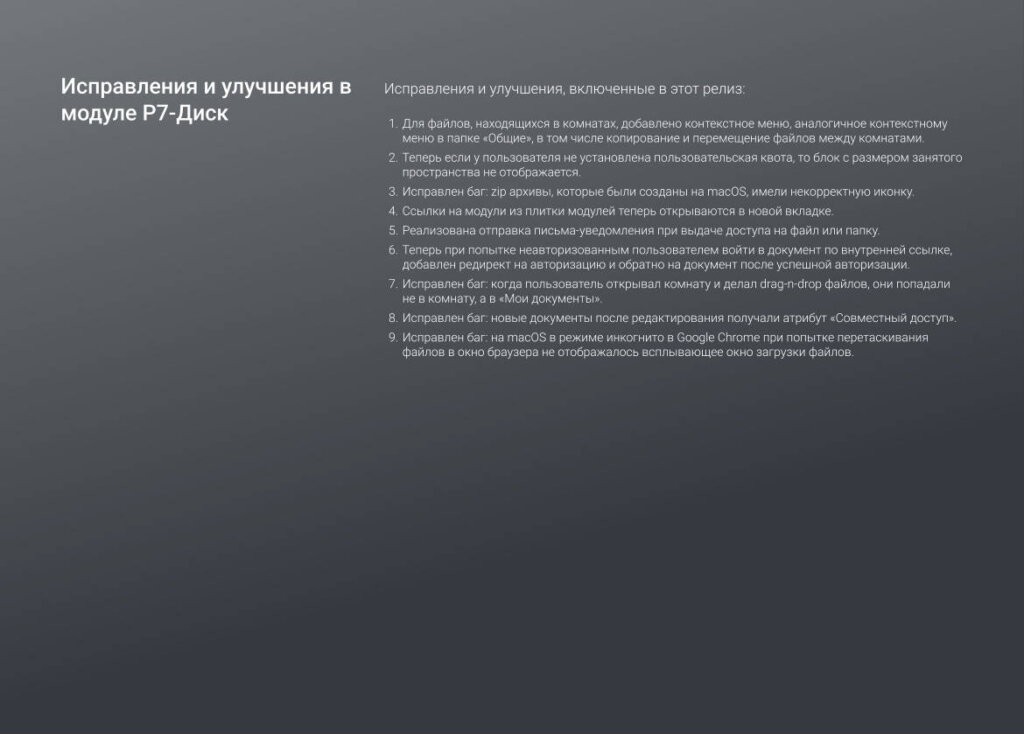 Информация о новых функциях, улучшениях и исправлениях в обновлении продукта