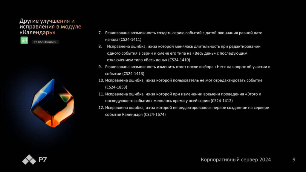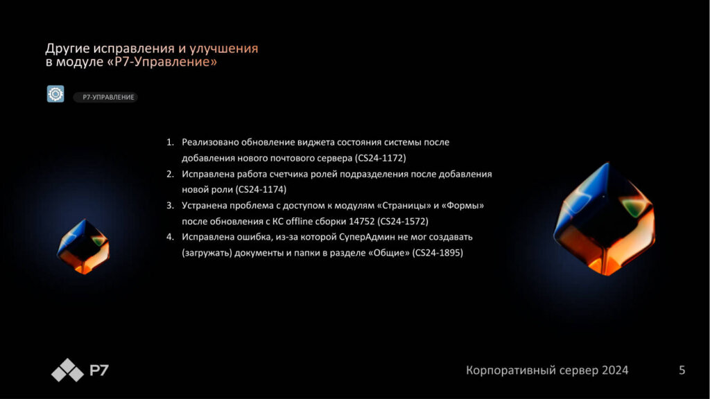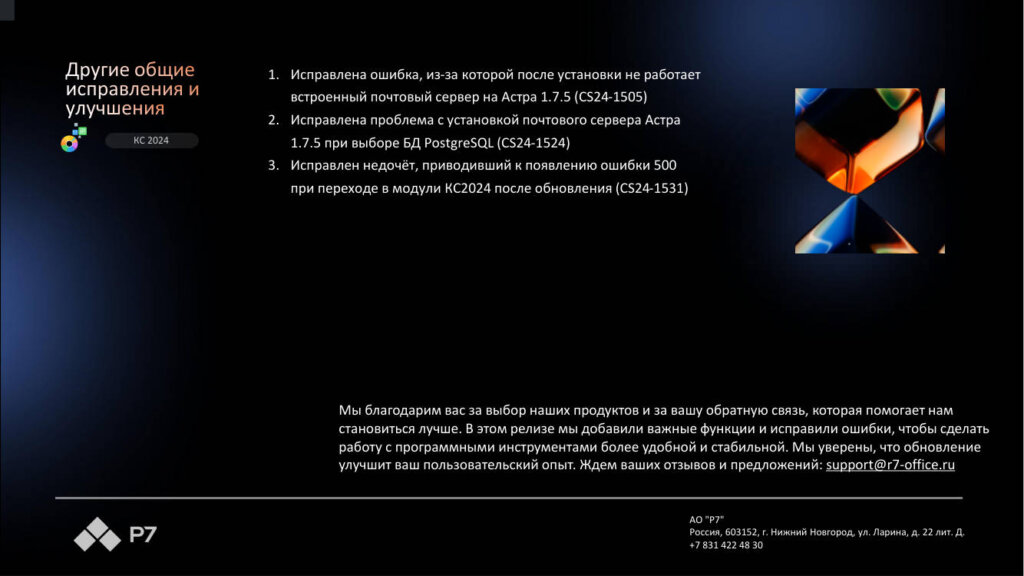 Информация о новых функциях, улучшениях и исправлениях в обновлении продукта