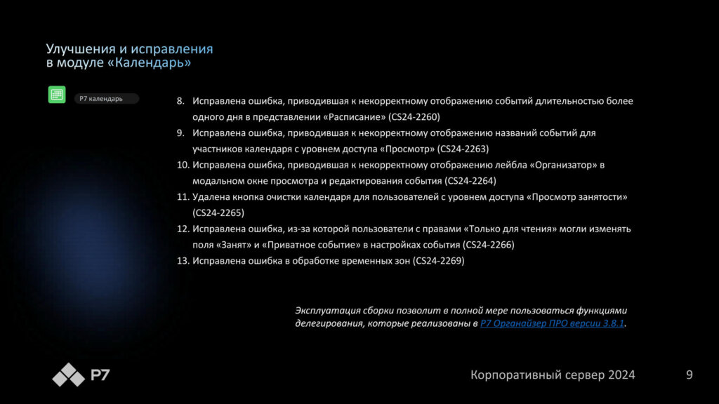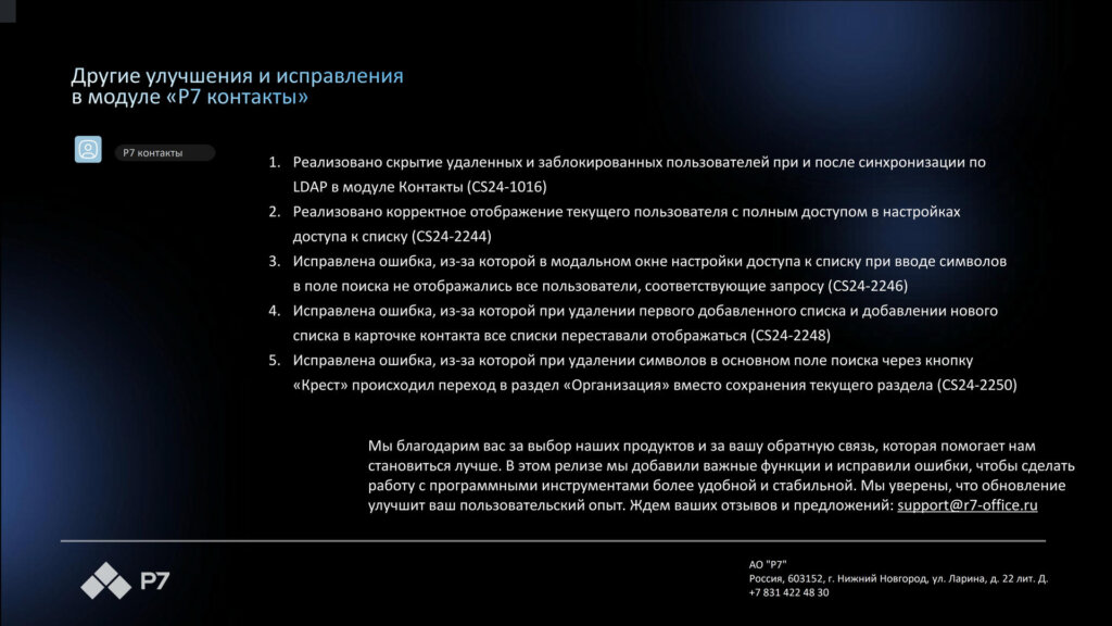 Информация о новых функциях, улучшениях и исправлениях в обновлении продукта