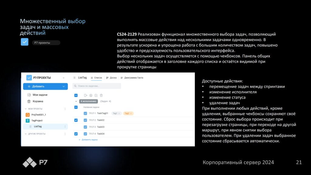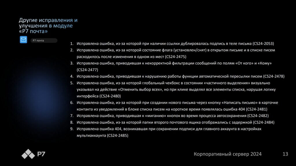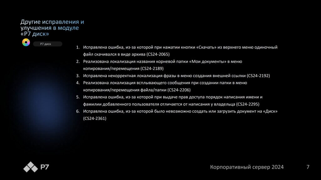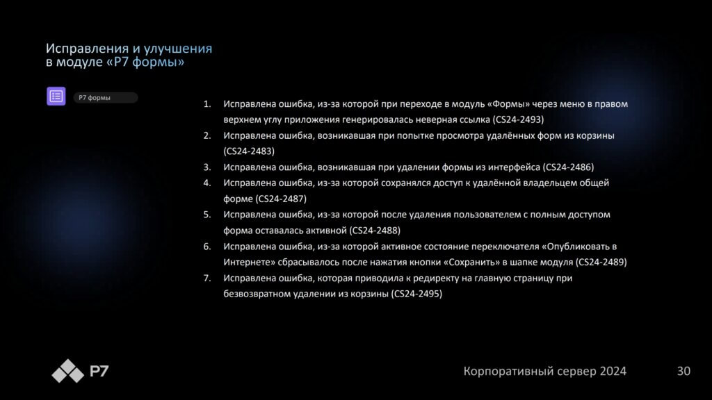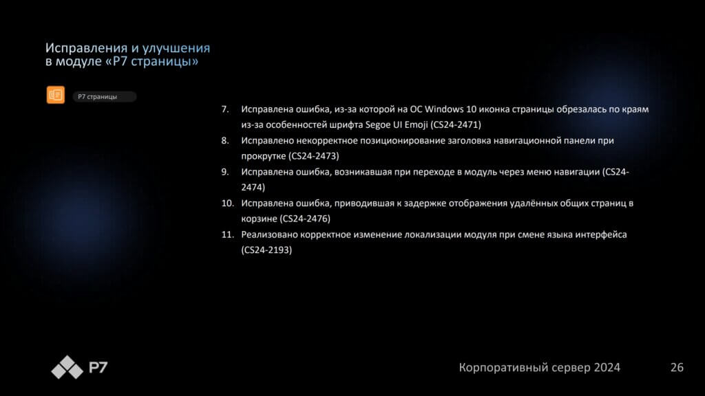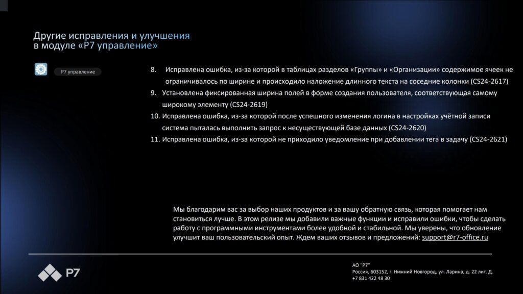 Информация о новых функциях, улучшениях и исправлениях в обновлении продукта
