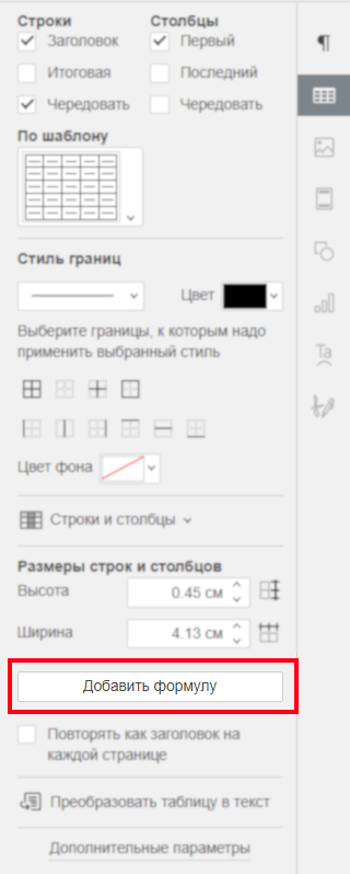 - нажмите кнопку Добавить формулу на правой боковой панели,