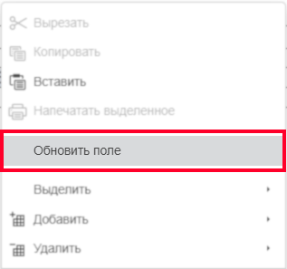 - Чтобы обновить результат отдельной формулы, выделите нужный результат и нажмите клавишу F9 или щелкните по результату правой кнопкой мыши и используйте пункт меню Обновить поле.