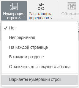 - При необходимости укажите дополнительные параметры. Для этого щелкните на Варианты нумерации строк в раскрывающемся меню Нумерация строк.