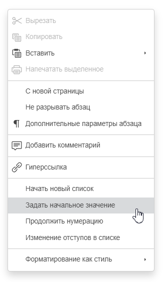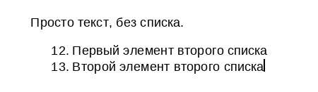 Нумеровать заново — позволяет сбросить нумерацию списка и начать её заново с указанного значения;