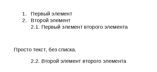 Отступ текста — позволяет управлять расположением текста относительно номеров, маркеров;