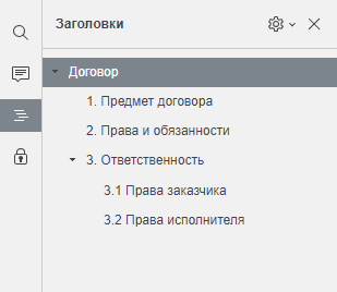 - На панели «Навигация» слева появится иерархическое дерево документа, по которому можно мгновенно переходить к любому разделу или пункту: