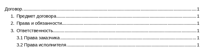 Допустим, вы готовите договор или отчёт следующей структуры: