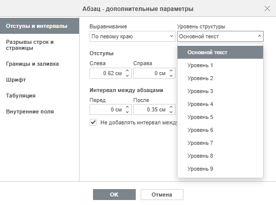 Уровень структуры определяет место абзаца в логической иерархии документа. Это одна из ключевых функций для работы с большими и сложными текстами.
