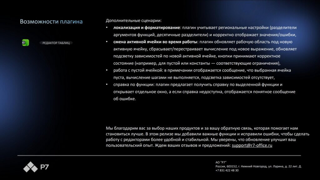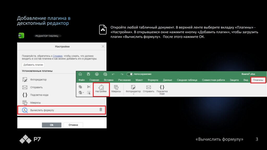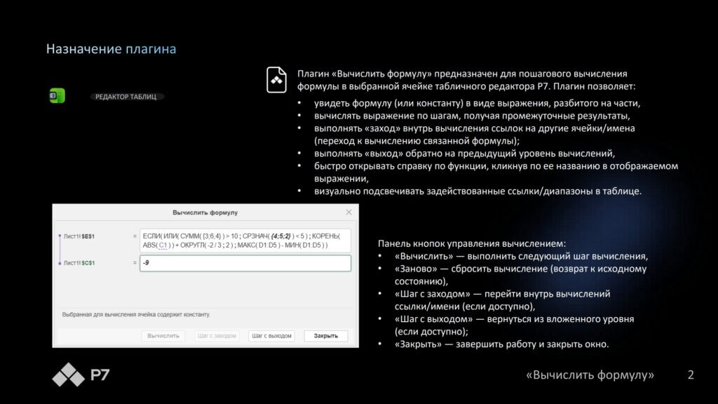 Руководство пользователя: плагин «Вычислить формулу» (Р7 Офис)