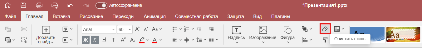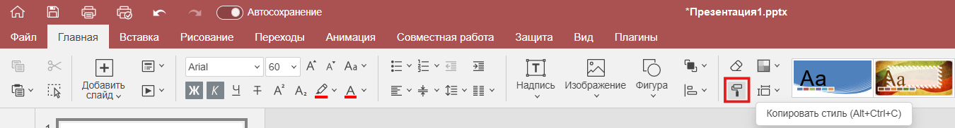на вкладке Главная верхней панели инструментов (указатель мыши будет при этом выглядеть так: