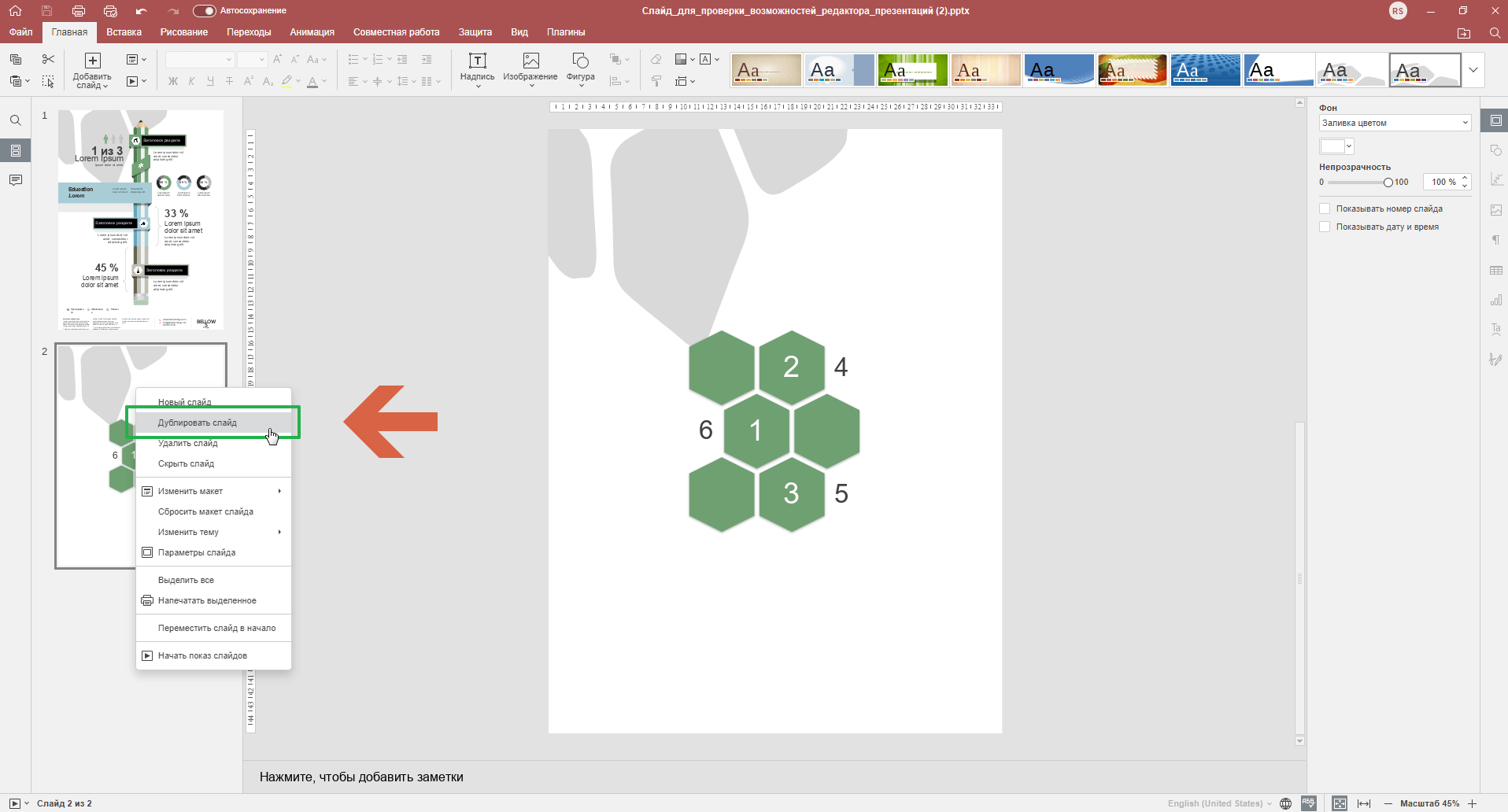 2. В контекстном меню выберите пункт «Дублировать слайд».