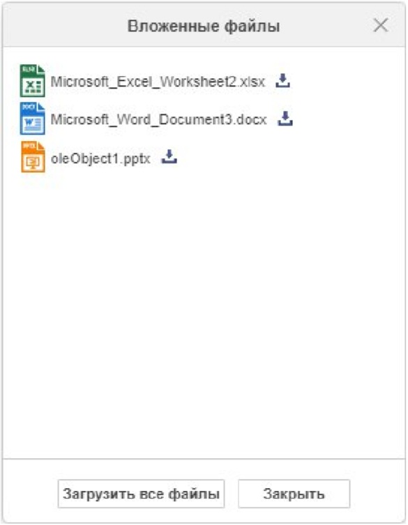 После нажатия отобразится окно со всеми вложенными файлами документа