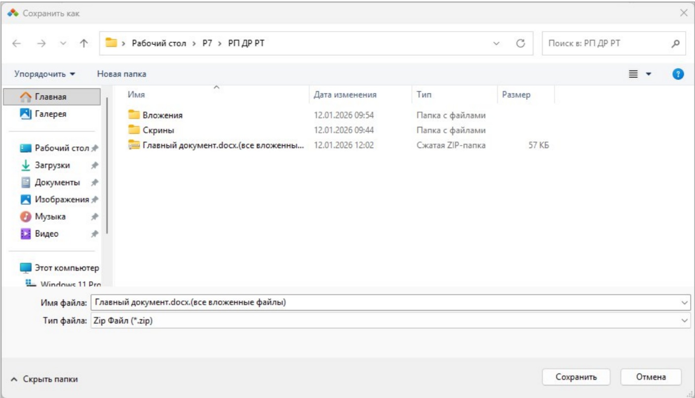 В окне «Вложенные файлы» нажмите кнопку «Загрузить все файлы». Файлы будут скачаны в виде ZIP-архива с именем, соответствующим основному документу.