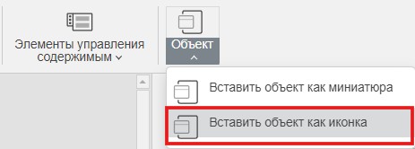 Добавление вложенного файла через «Вставку объекта»