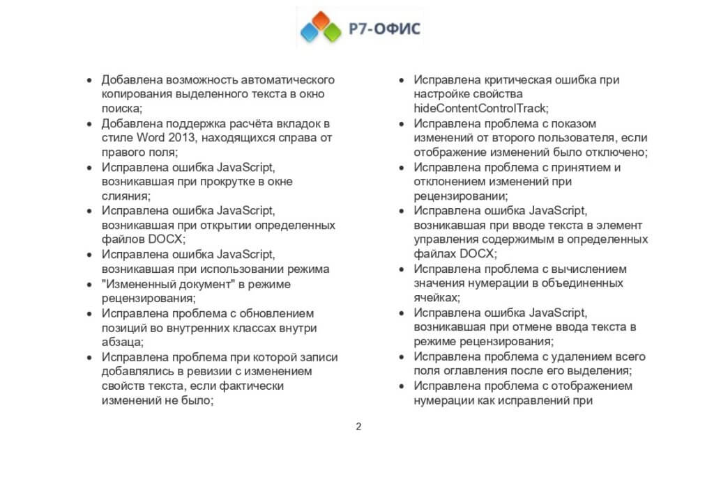 Информация о новых функциях, улучшениях и исправлениях в обновлении продукта