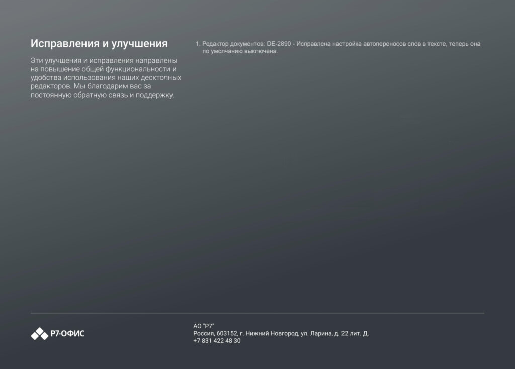 Информация о новых функциях, улучшениях и исправлениях в обновлении продукта