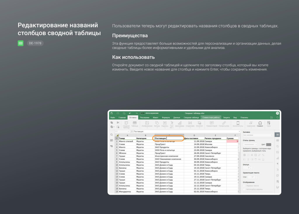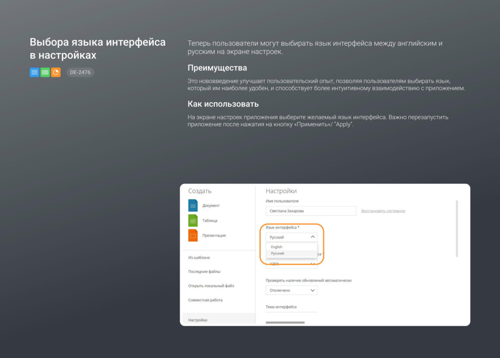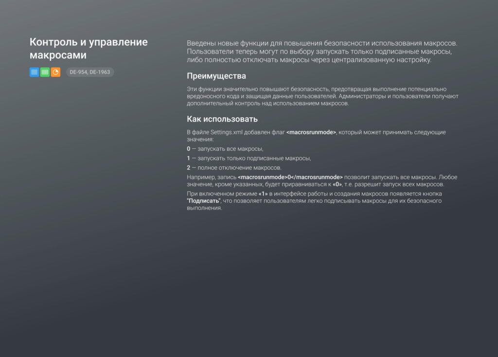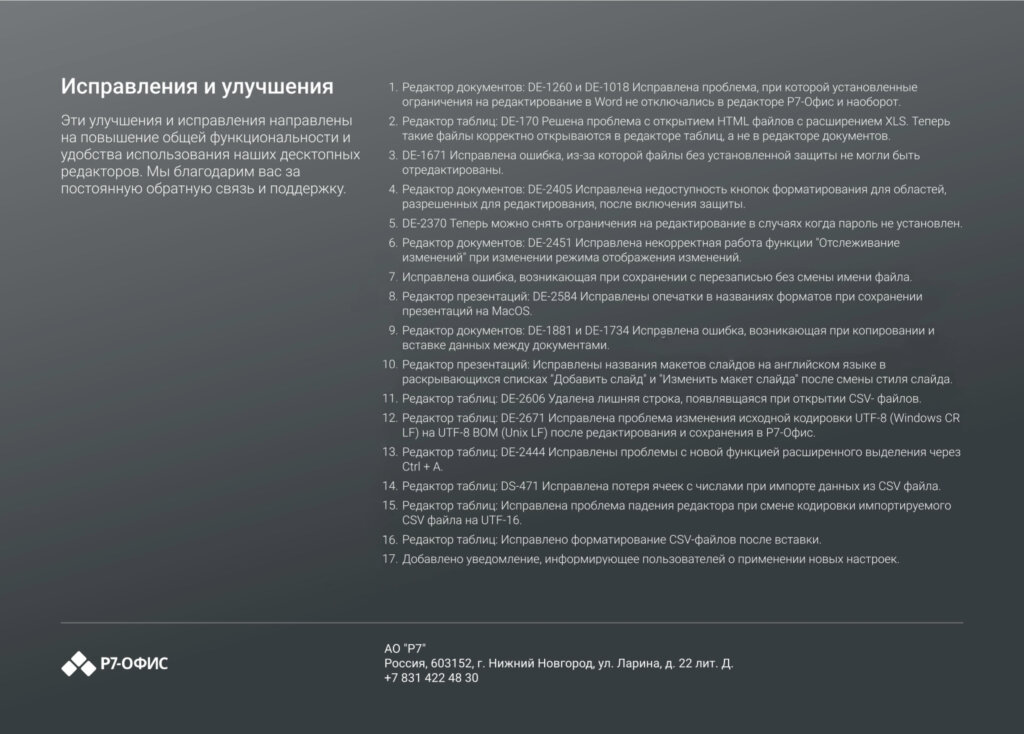 Информация о новых функциях, улучшениях и исправлениях в обновлении продукта