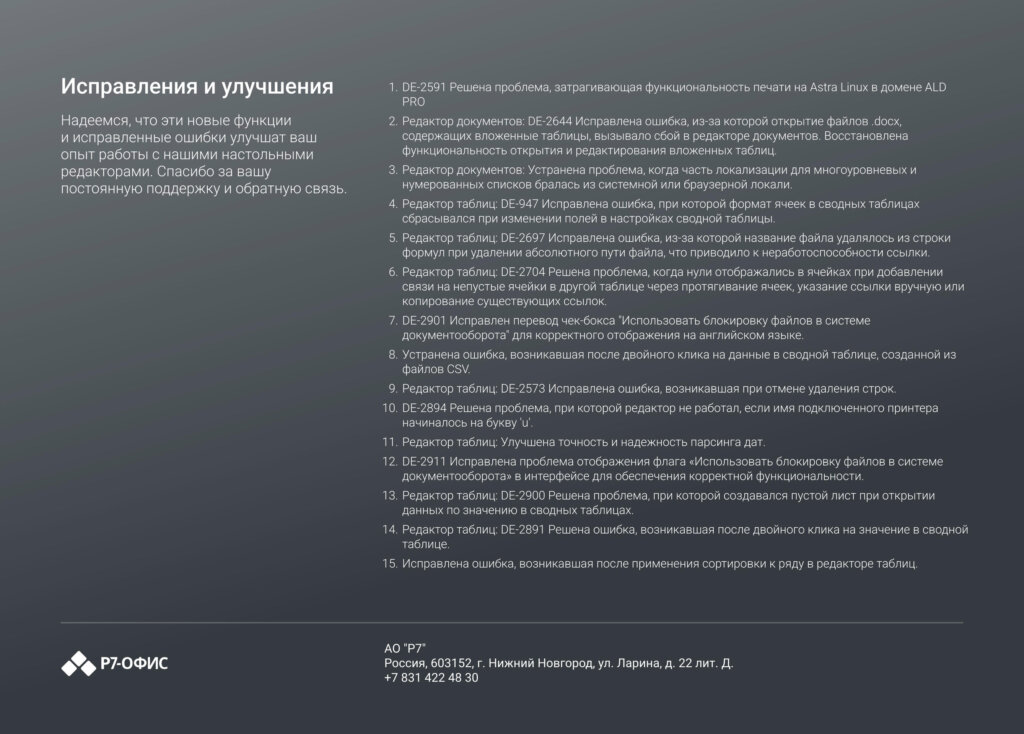 Информация о новых функциях, улучшениях и исправлениях в обновлении продукта