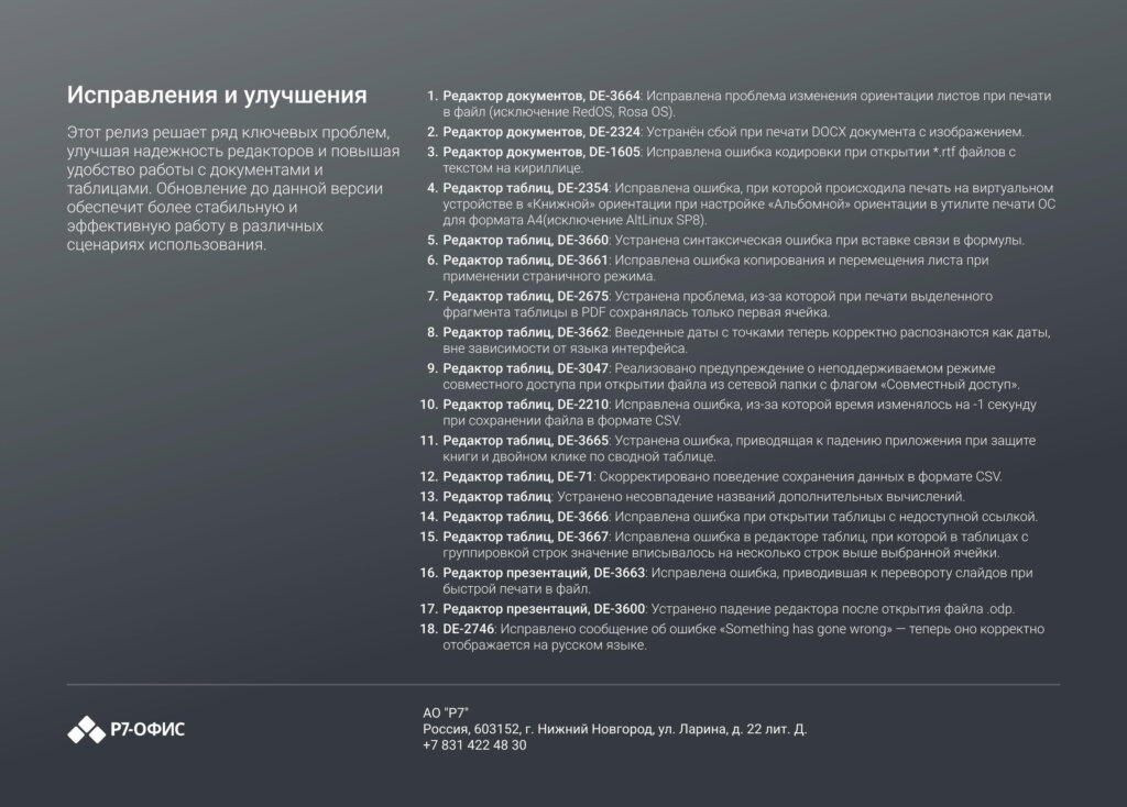 Информация о новых функциях, улучшениях и исправлениях в обновлении продукта