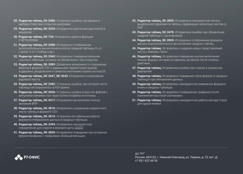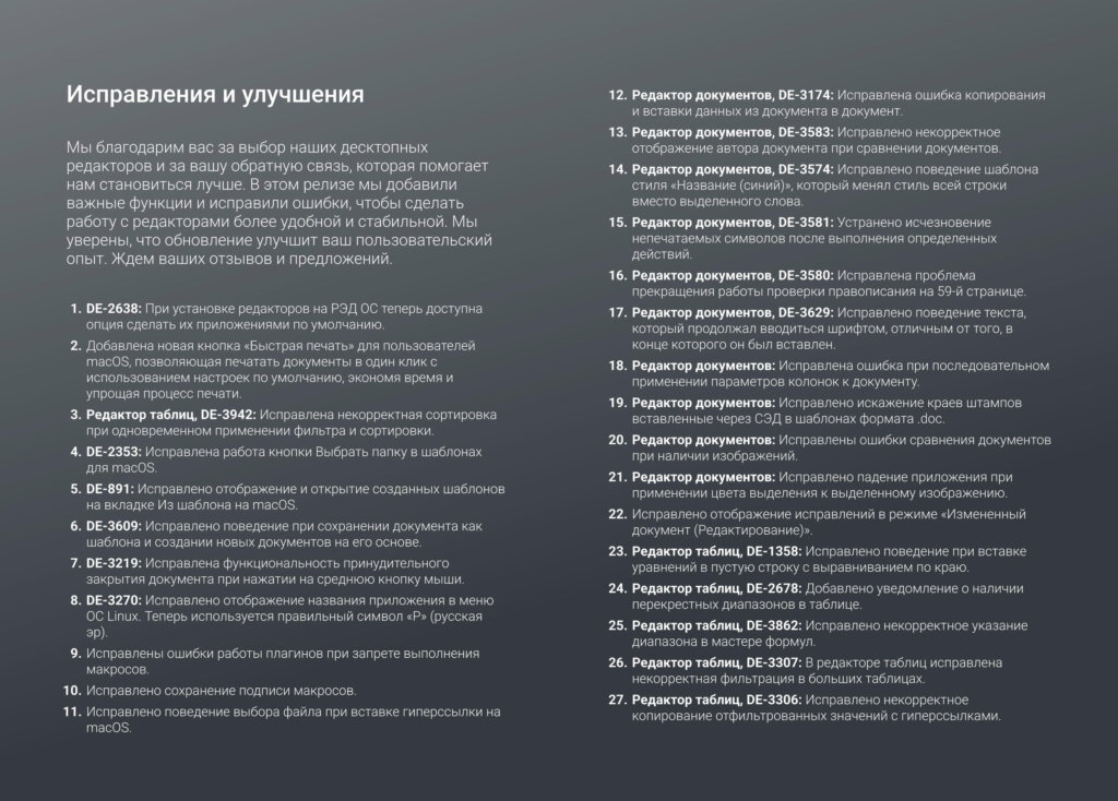 Информация о новых функциях, улучшениях и исправлениях в обновлении продукта