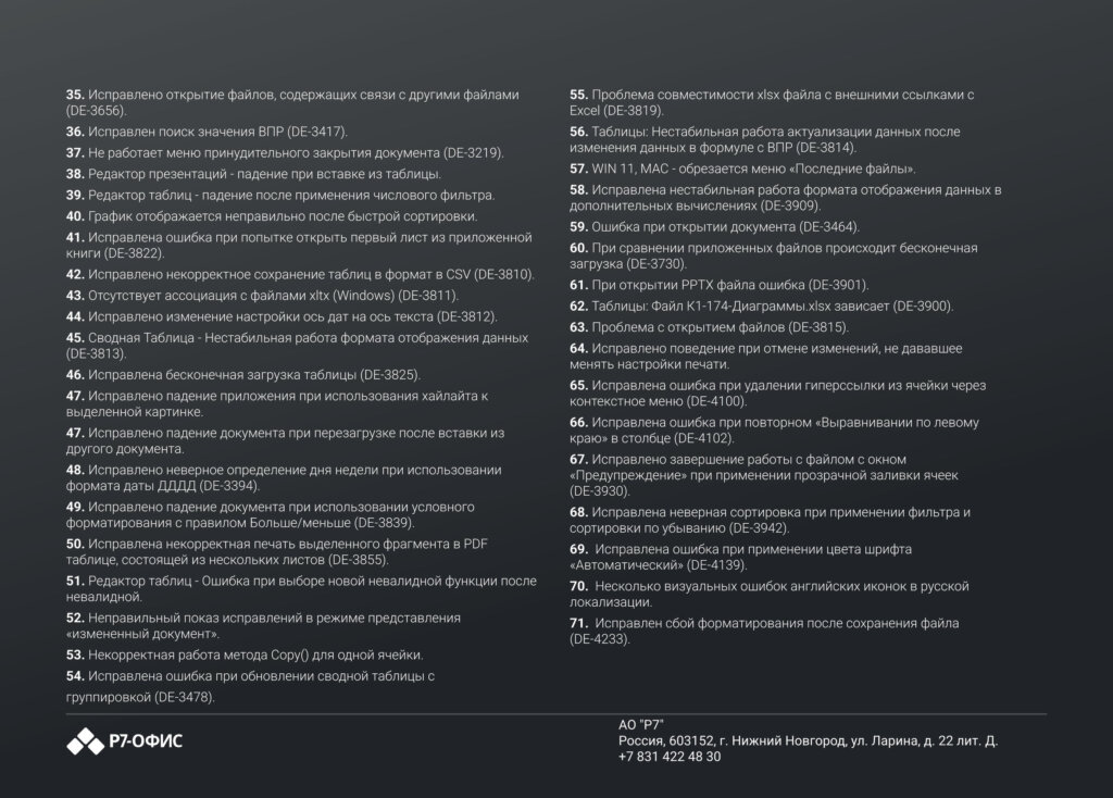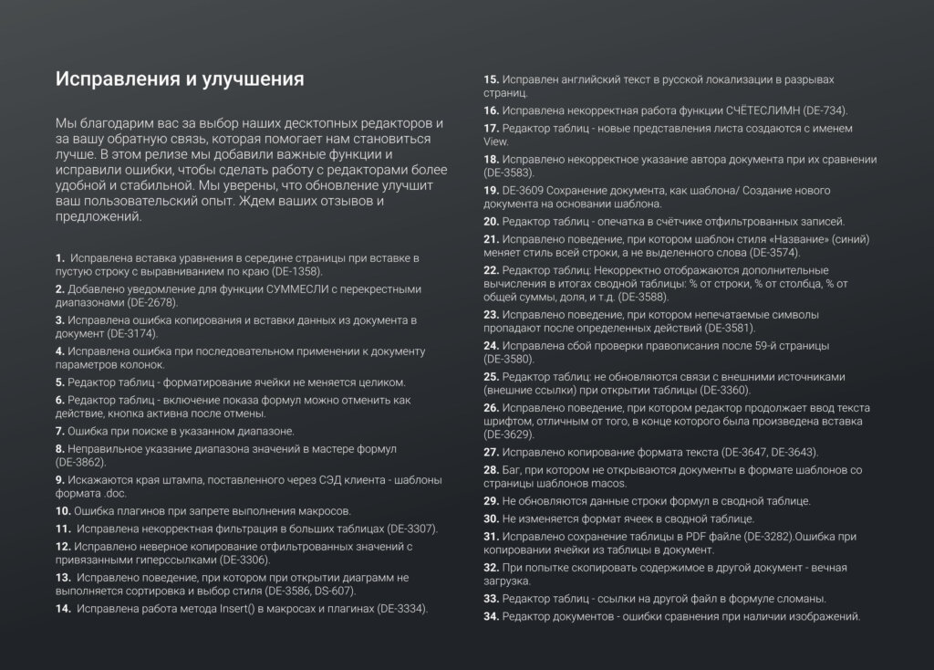 Информация о новых функциях, улучшениях и исправлениях в обновлении продукта