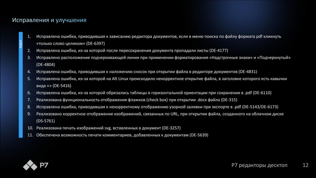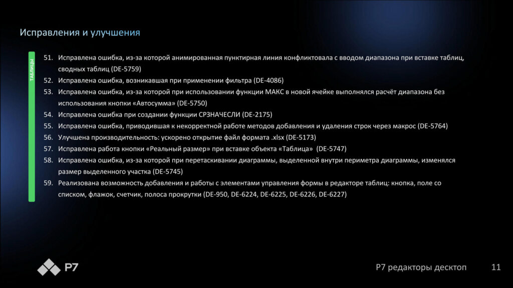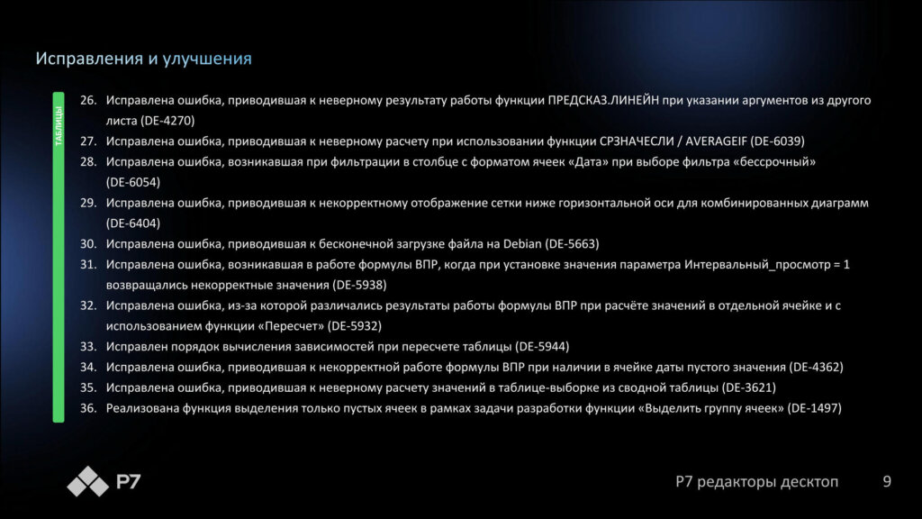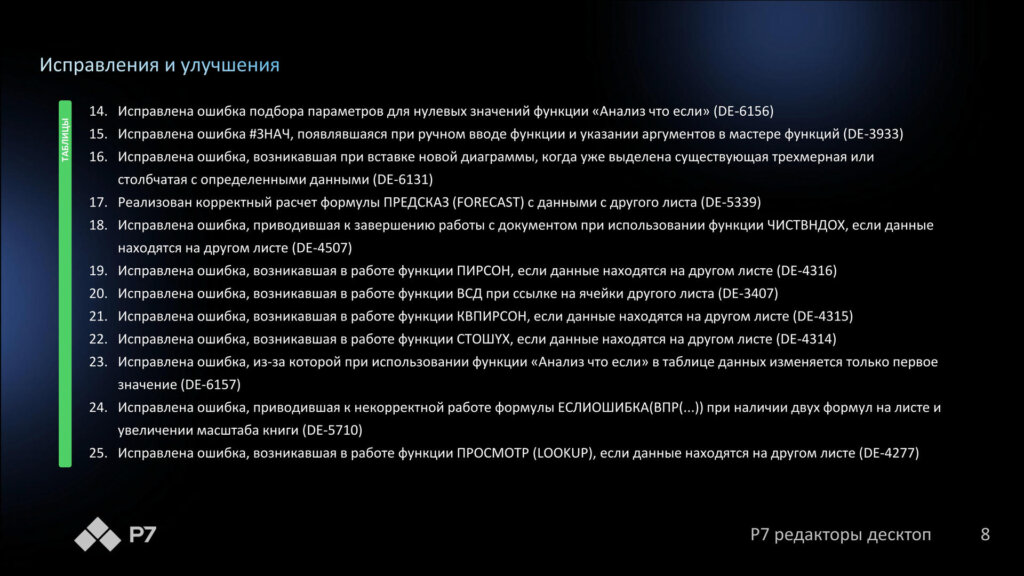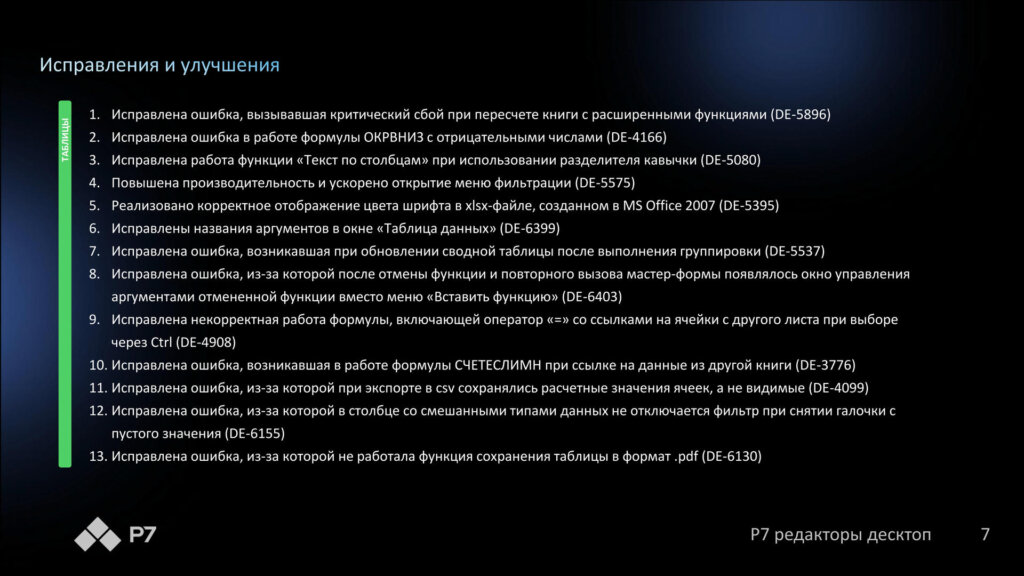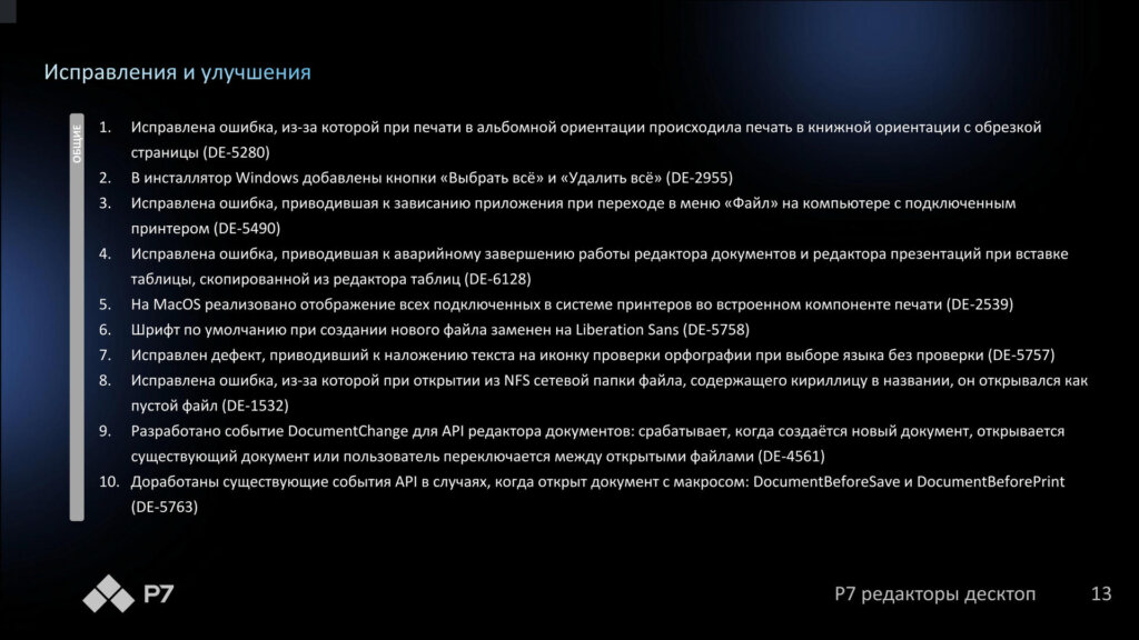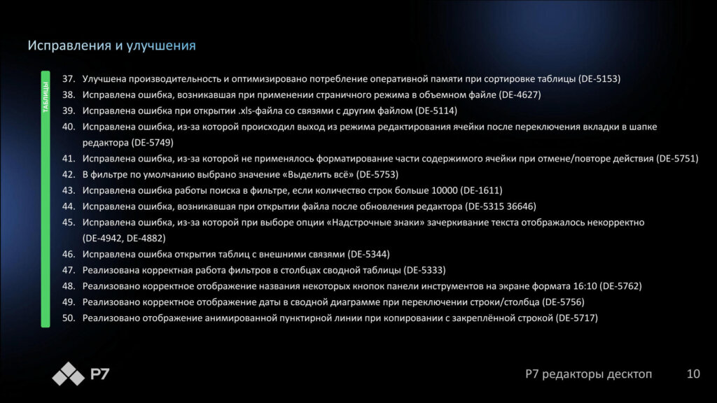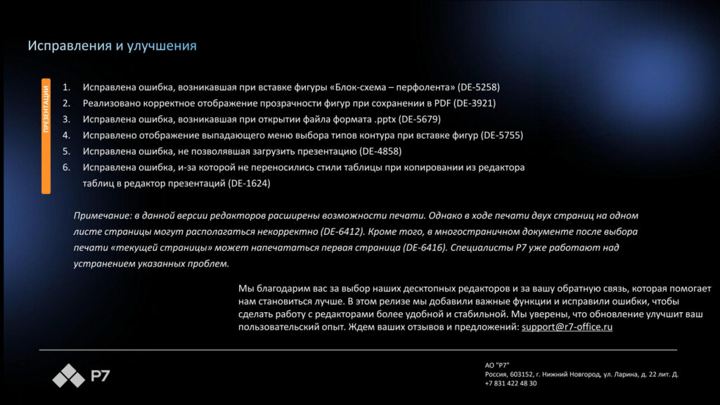 Информация о новых функциях, улучшениях и исправлениях в обновлении продукта