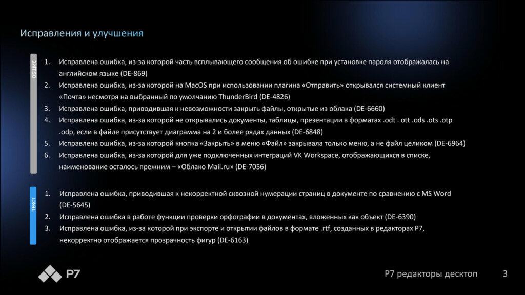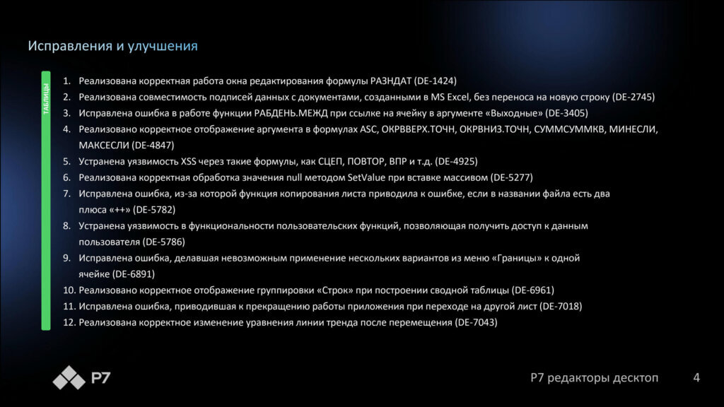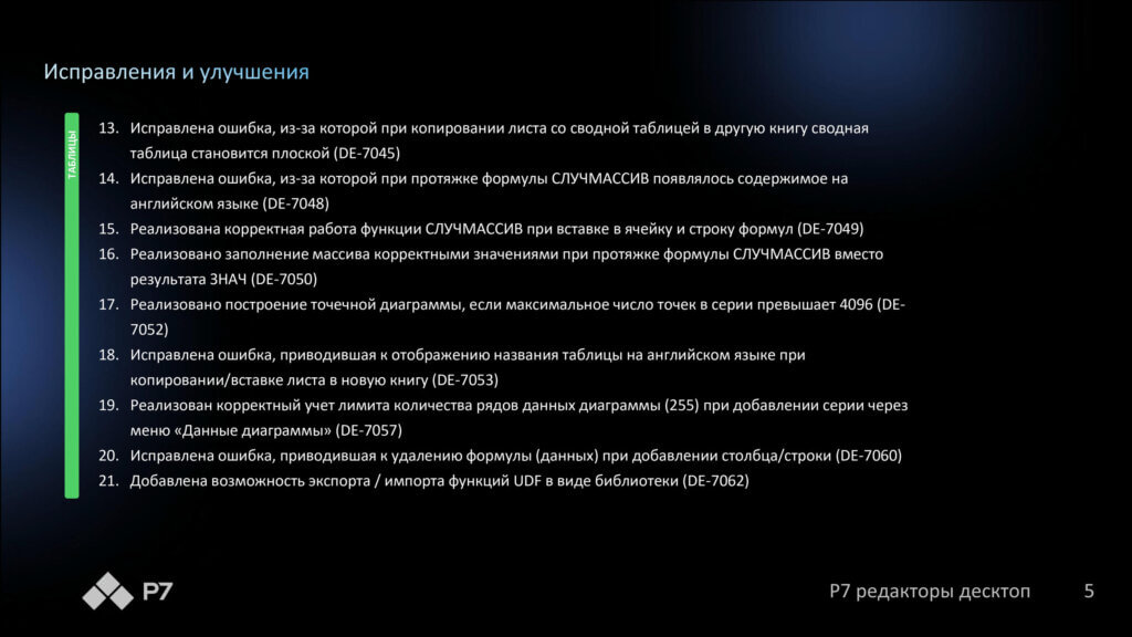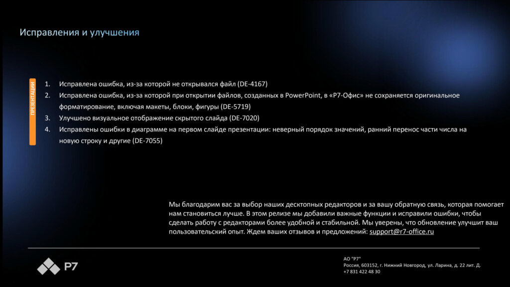 Информация о новых функциях, улучшениях и исправлениях в обновлении продукта