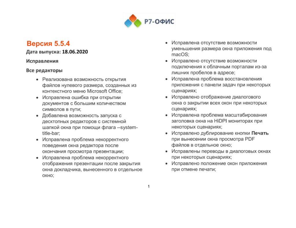 Информация о новых функциях, улучшениях и исправлениях в обновлении продукта