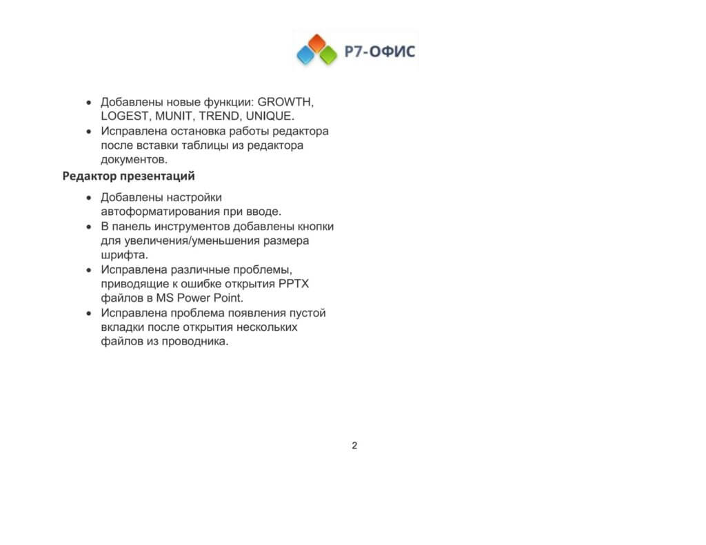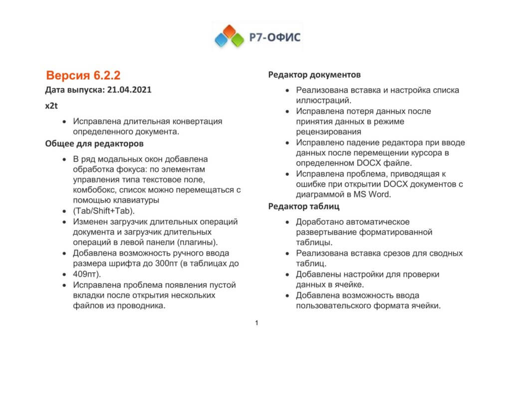 Информация о новых функциях, улучшениях и исправлениях в обновлении продукта