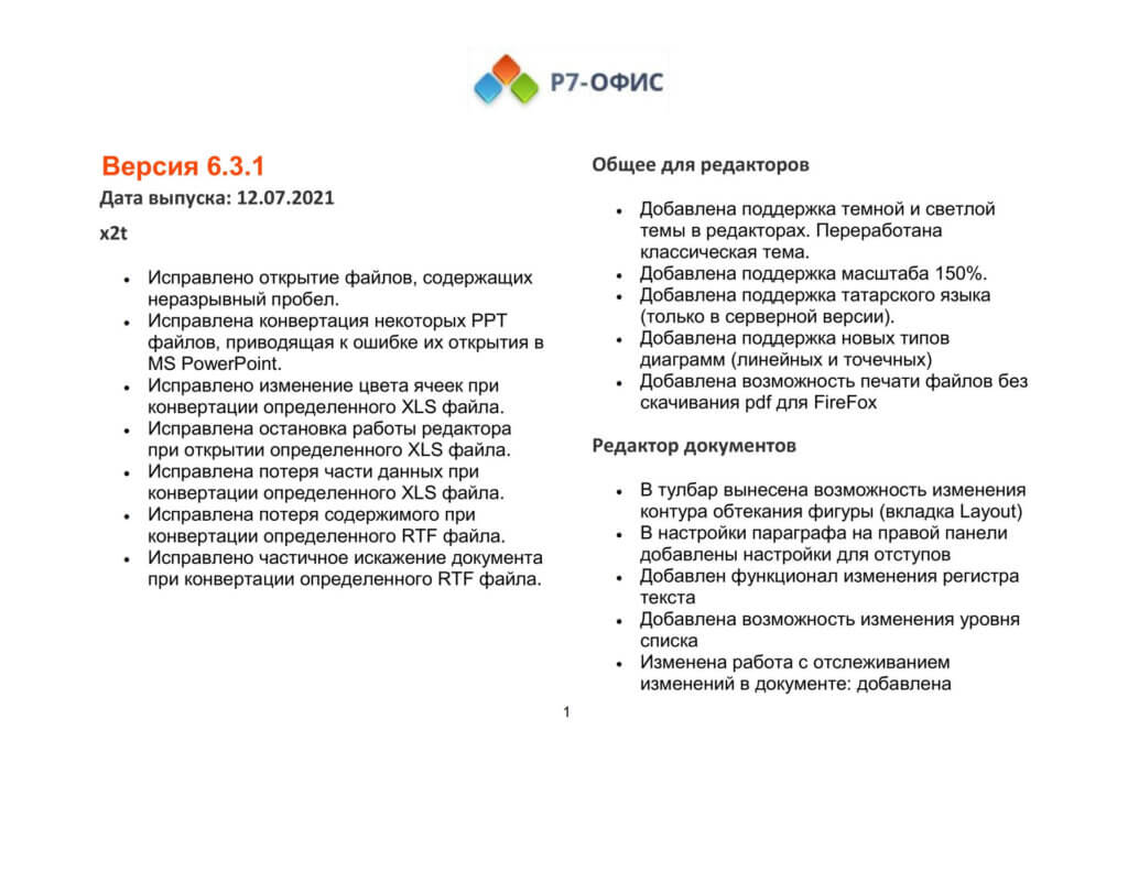 Информация о новых функциях, улучшениях и исправлениях в обновлении продукта