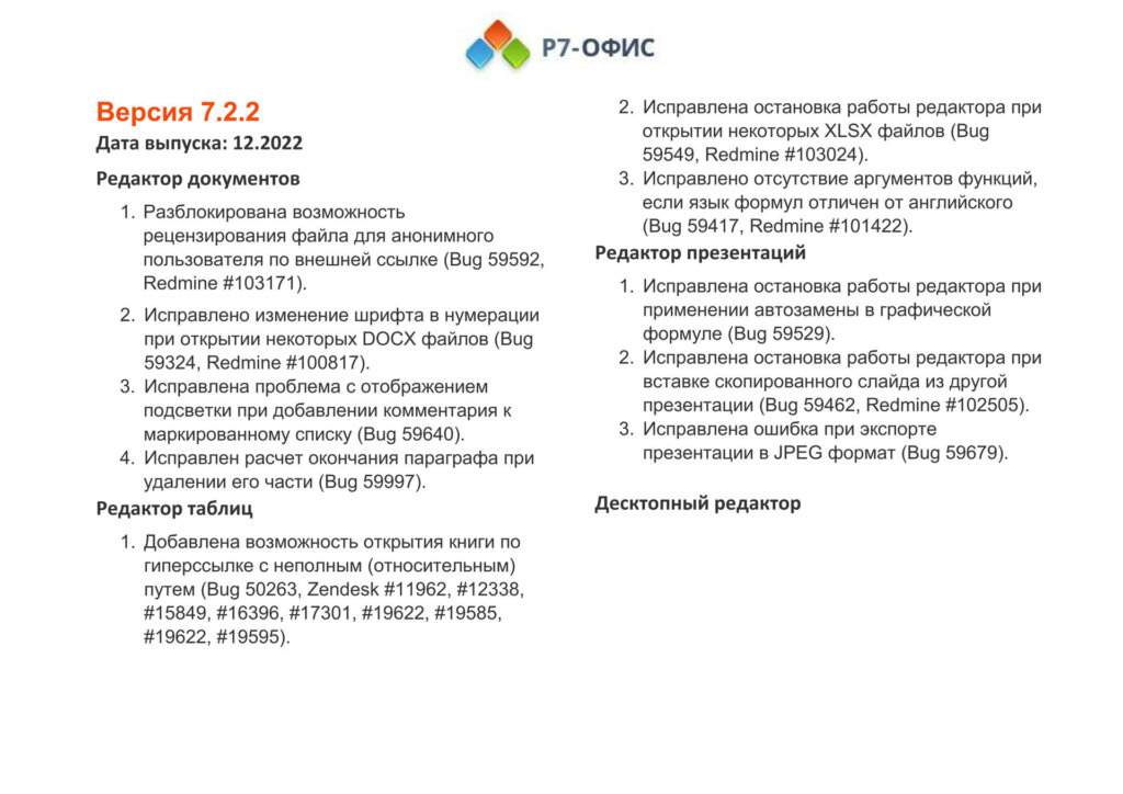 Информация о новых функциях, улучшениях и исправлениях в обновлении продукта
