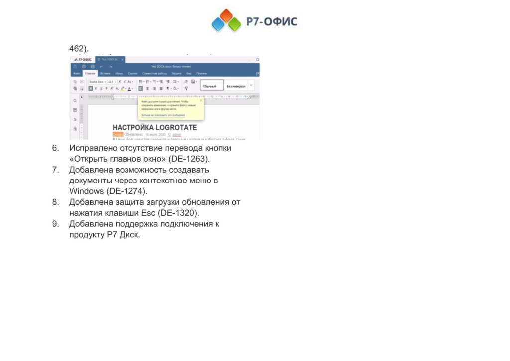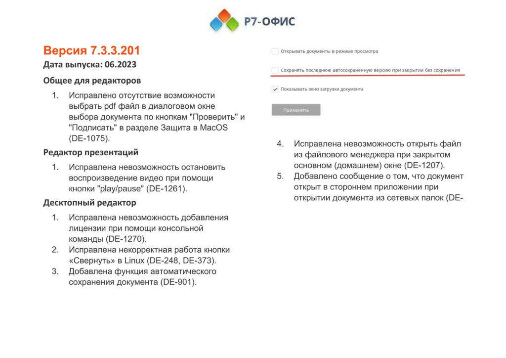 Информация о новых функциях, улучшениях и исправлениях в обновлении продукта