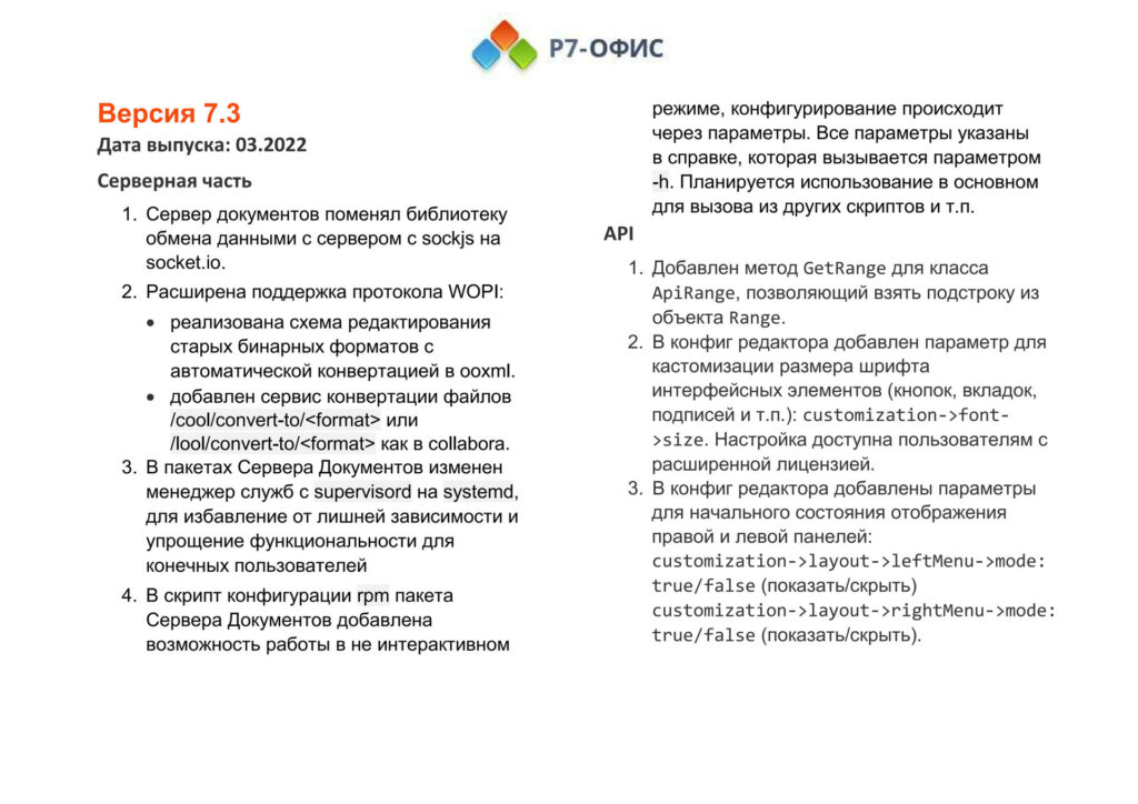 Версия 7.3