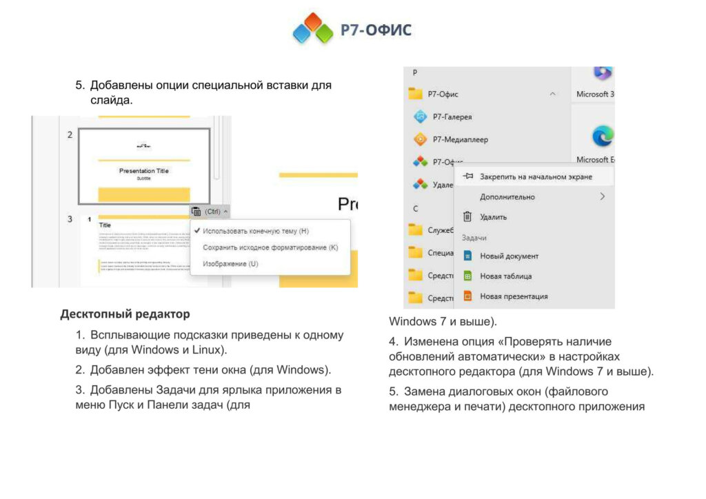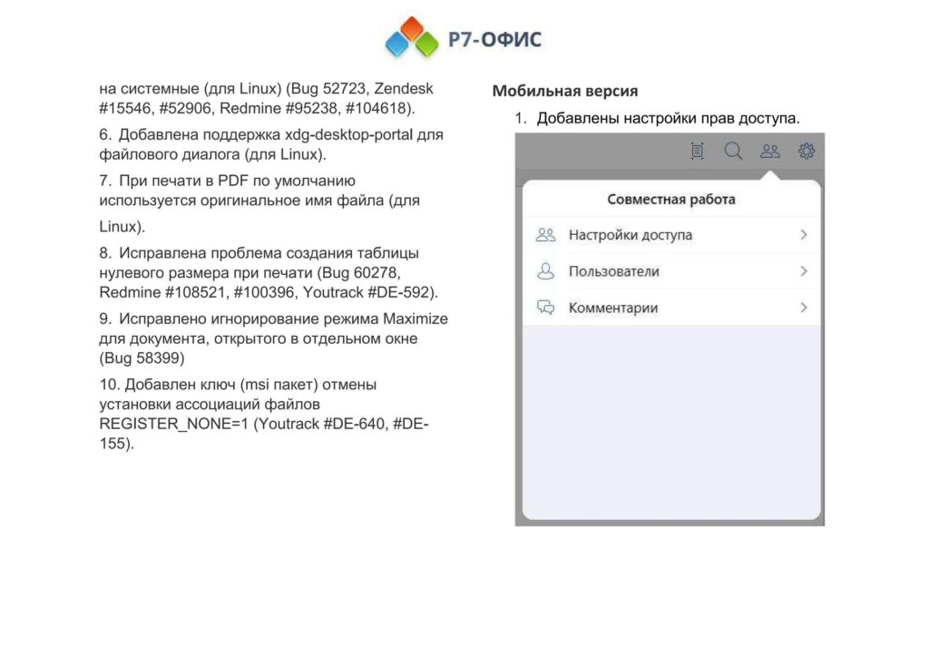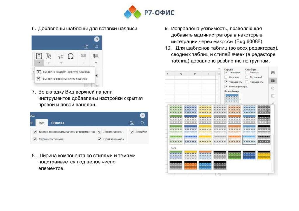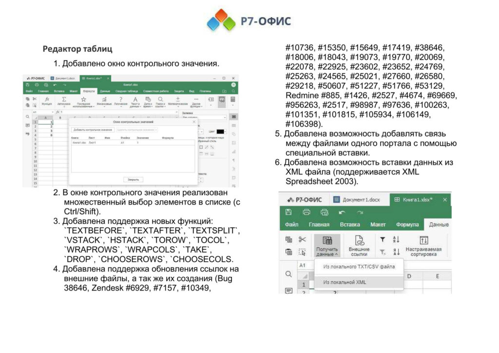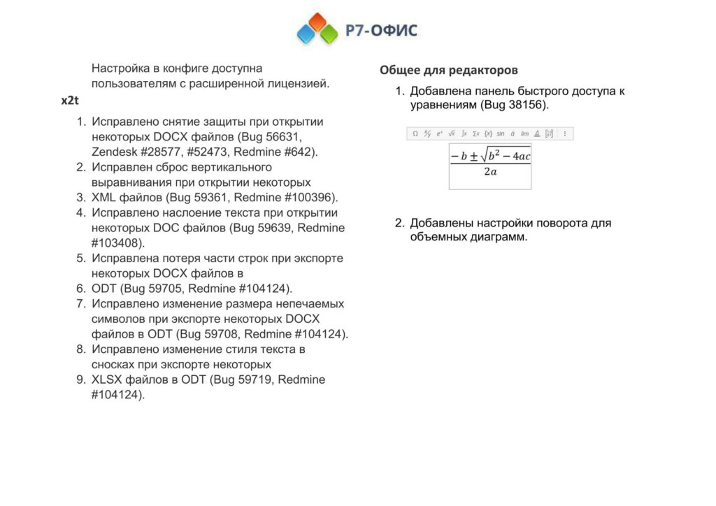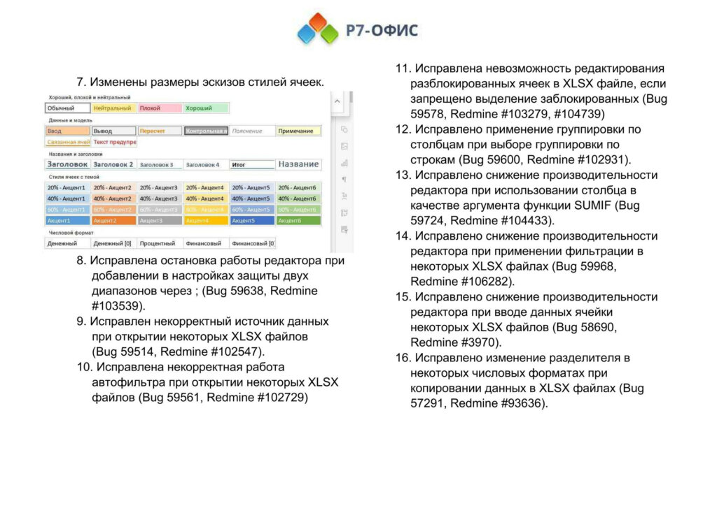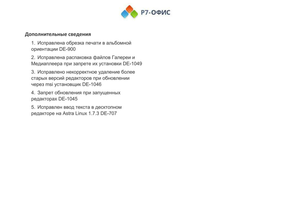 Информация о новых функциях, улучшениях и исправлениях в обновлении продукта