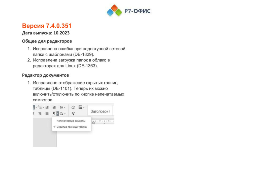 Информация о новых функциях, улучшениях и исправлениях в обновлении продукта