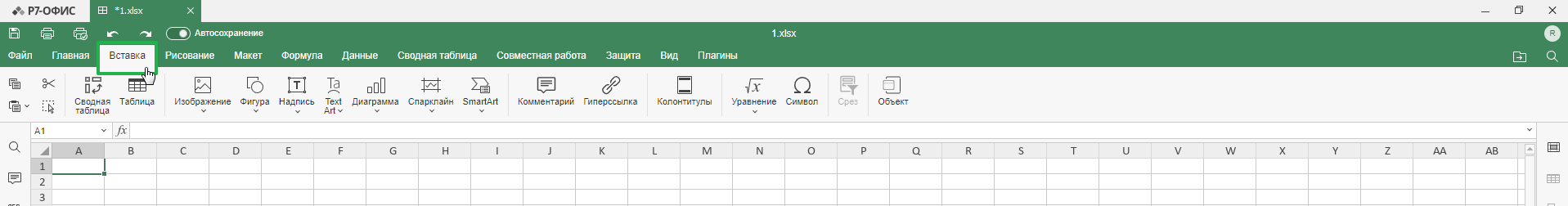 На верхней панели нажмите вкладку «Вставка»: