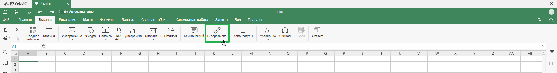 Найдите и кликните по значку «Гиперссылка»: