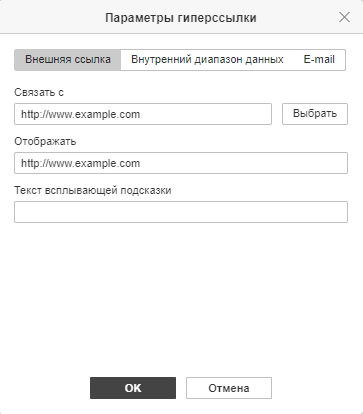 Появится окно «Параметры гиперссылки»: