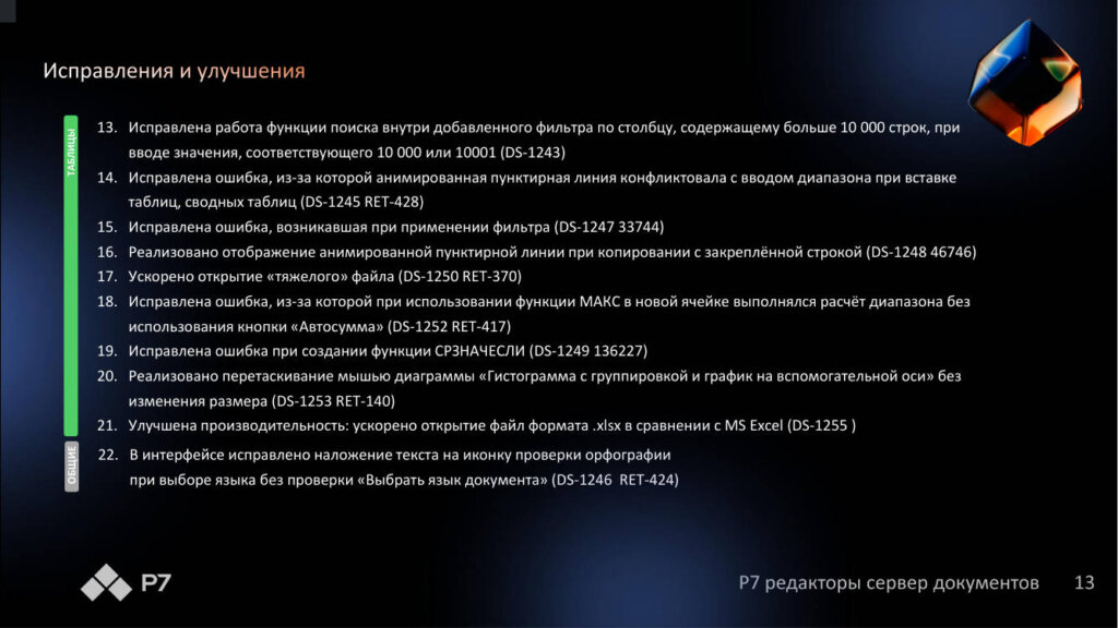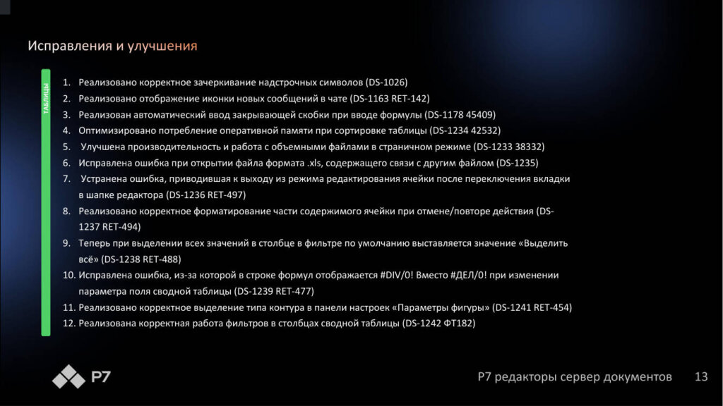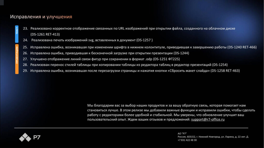 Информация о новых функциях, улучшениях и исправлениях в обновлении продукта