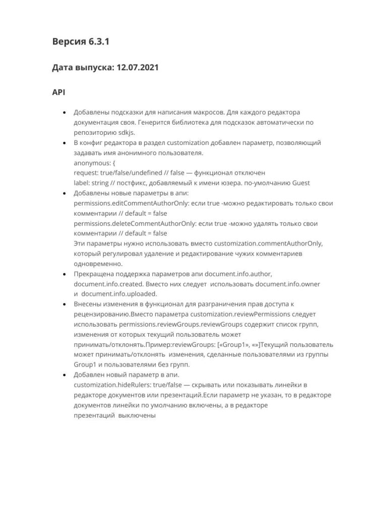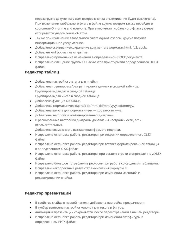 Информация о новых функциях, улучшениях и исправлениях в обновлении продукта