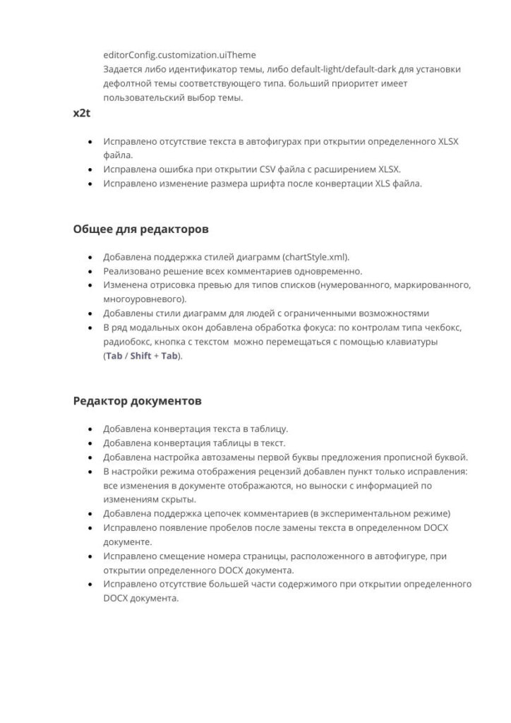 Информация о новых функциях, улучшениях и исправлениях в обновлении продукта