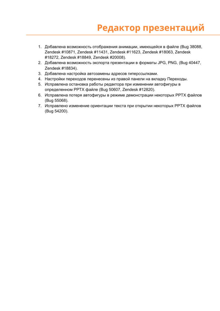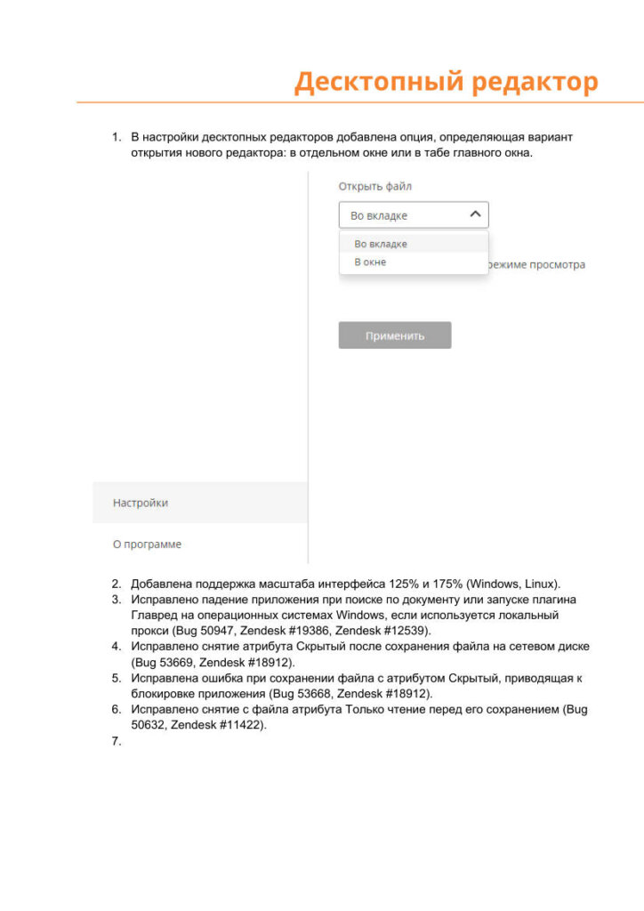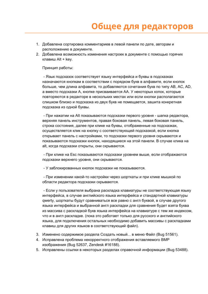 Информация о новых функциях, улучшениях и исправлениях в обновлении продукта