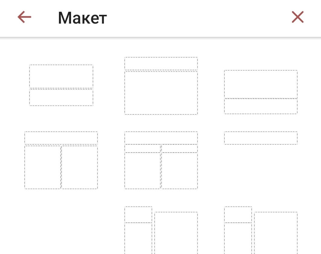 - выберите нужный макет (проведите пальцем вверх, чтобы увидеть больше макетов),