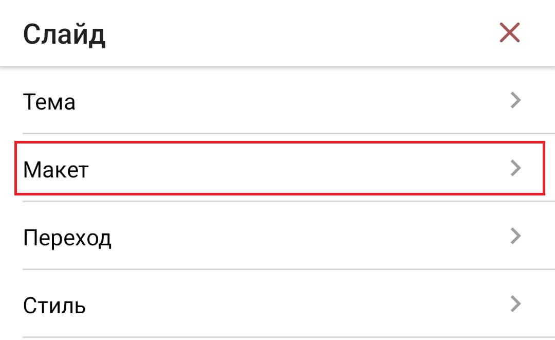 - коснитесь пункта меню Макет,