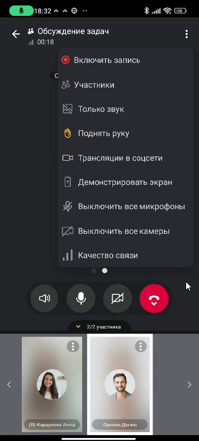- В звонке вызовите контекстное меню и выберите пункт «Трансляции в соцсети».