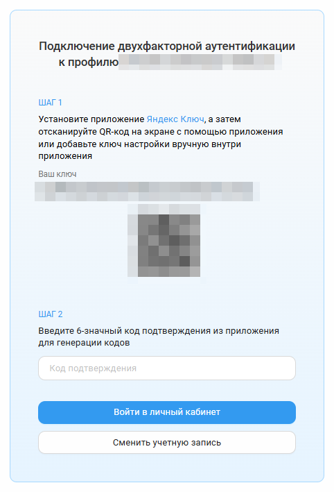 Либо, при первом логине, подключите профиль двухфакторной аутентификации по инструкции на появившейся странице:
